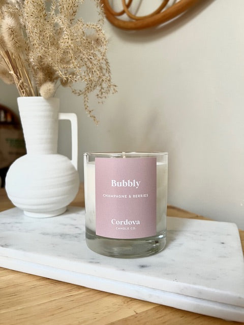 Pop the bubbly! Effervescent champagne and sweet fruit medleys create a playful, celebratory scent experience. Poured in a beautiful soft touch matte jar.