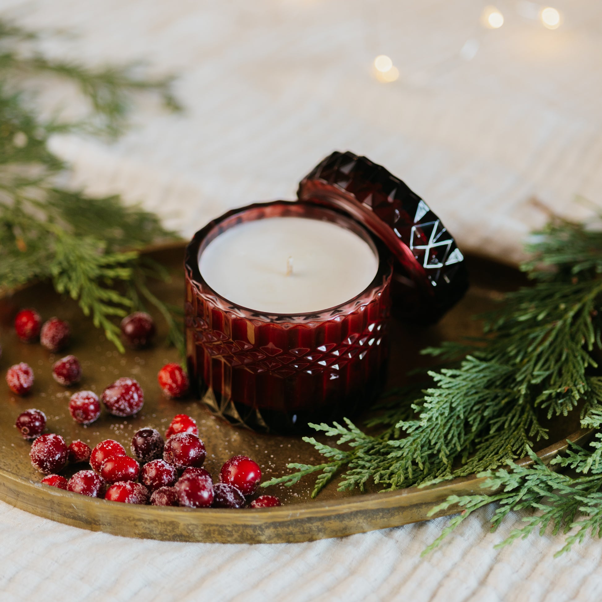 A blend of tart cranberries, fresh cut evergreens and juniper make up this enchanting fragrance. The crisp evergreen notes are reinforced by eucalyptus, fir needle and cedar leaf essential oils, which combined create this ultimate winter candle.